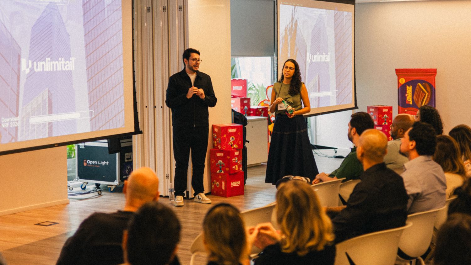 O pontapé inicial para o debate foi uma apresentação de Fátima Leal, Diretora de Agências e Parcerias, e Thiago Stelle, Head de Marketing e Insights, ambos da Unlimitail, operação de Retail Media do Carrefour, sobre as tendências que captaram após a participação na feira.